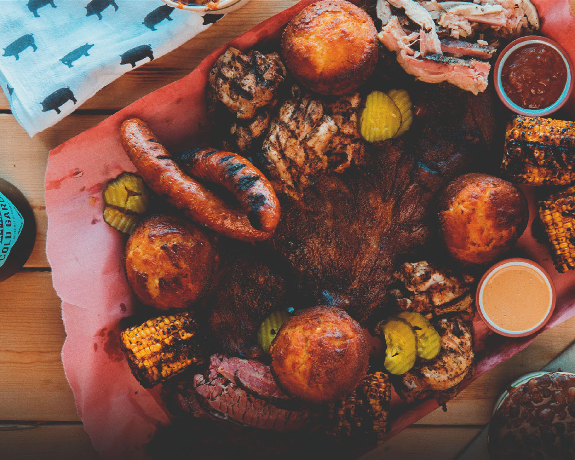 Have a group to feed? Book Jane for barbecue catering in Calgary, Red Deer, Airdrie, Okotoks, Canmore and beyond. Order your catering easily online for private and corporate dining for meetings, events, team lunches and social gatherings. Their mobile smoker, food truck, and expert barbecue caterers are ready to host you at your venue, work place, backyard, campsite, or just about any old place. Alternatively, book the 'Glamp-Shack' venue located steps away from the BMO Convention Center, Saddledome, TELUS Convention Centre, downtown hotels and more. The venue is bookable for private and corporate dining of 30 to 90 folks and offers low lighting with a full service bar, buffet or family style food service in a 'backyard bayou' style venue space. Request a murder mystery dinner or tasting event for 30 or more. Another option is book Jane off-site with the food truck or mega smoker for 100 to 2,000 folks.